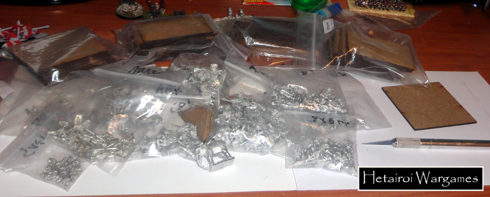 Hace poco he recibido las figuras que he elegido como premio del concurso de pintura de Pendraken. Aproximadamente 250 figuras, principalmente romanos republicanos, de las que iré publicando fotos para que veáis su calidad (que es excelente). ¡Ahora sólo necesito tiempo para pintarlas!